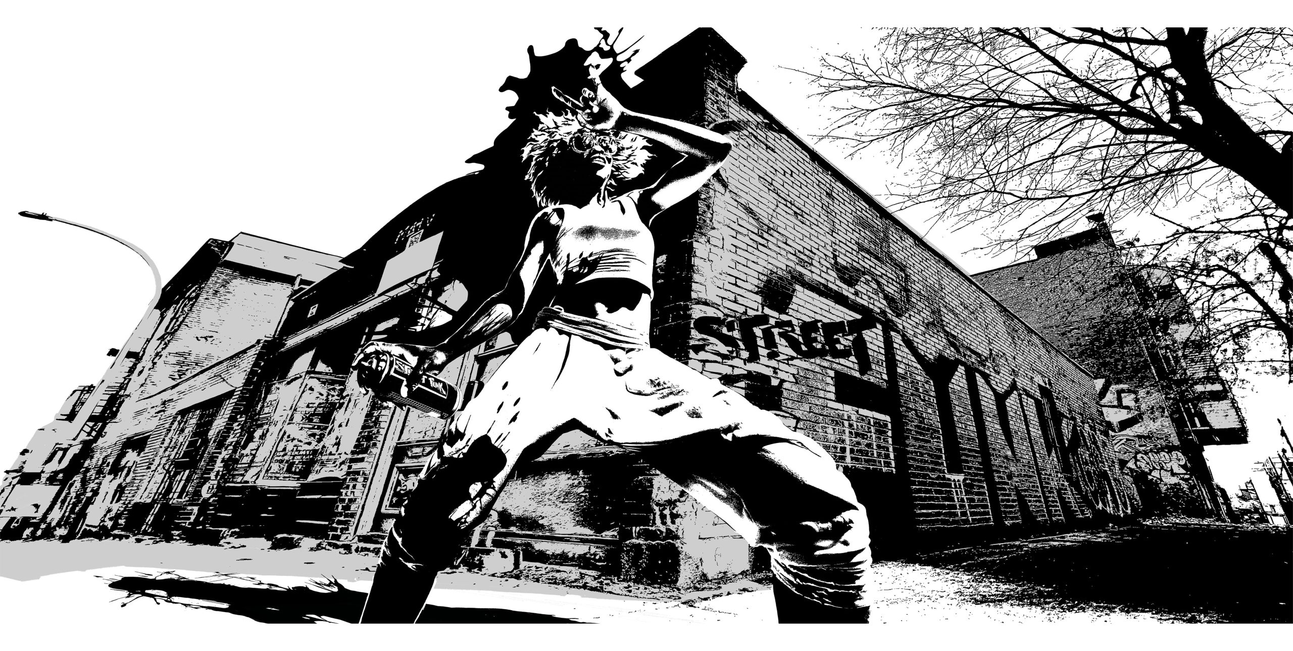 “Corner O Street & Funk”: In this bold and playful painting, Funky has cheekily altered the tag of well-known MTL street artist FLAIR. He’s one of her favorite targets—not because she has an agenda, but simply because his tag is easy to transform into Funk. This piece captures the rebellious spirit and playful energy of street art, making it a vibrant addition to any collection.